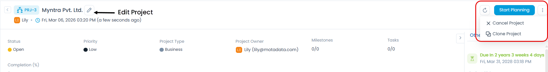 Edit PermissionsYour ability to edit project details depends on your assigned project role and permissions.