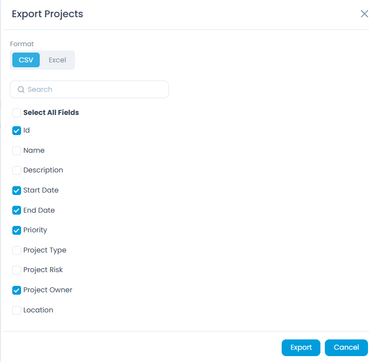 - **Export Project Data**: Download project data in CSV or Excel format for reporting or offline review.