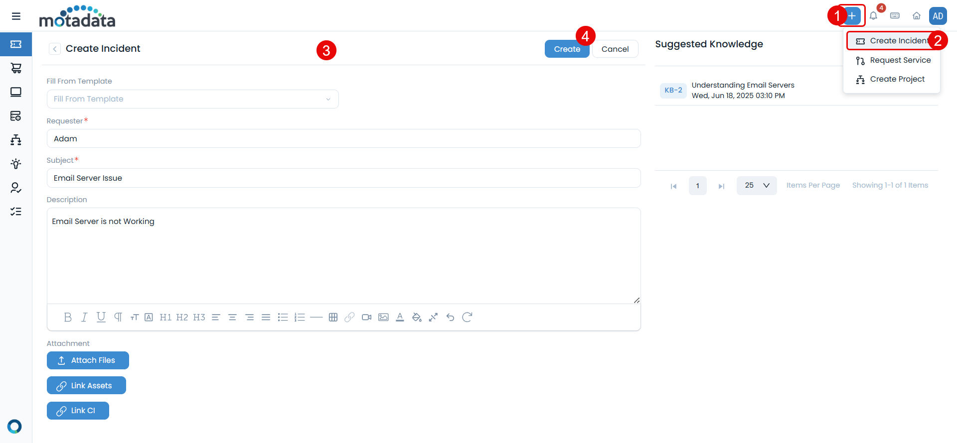 Select Create Incident from the dropdown