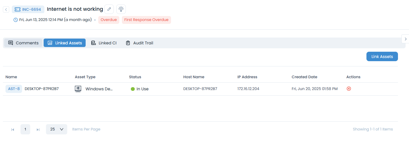 - Link Assets: Associate hardware or software with your request. (Available only if the Link Asset permission is granted from the Support Portal Settings and the respective Service Catalog.)
