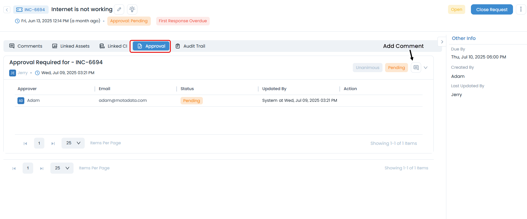 - View Conversation History: See all communications about the request in the Comments tab.