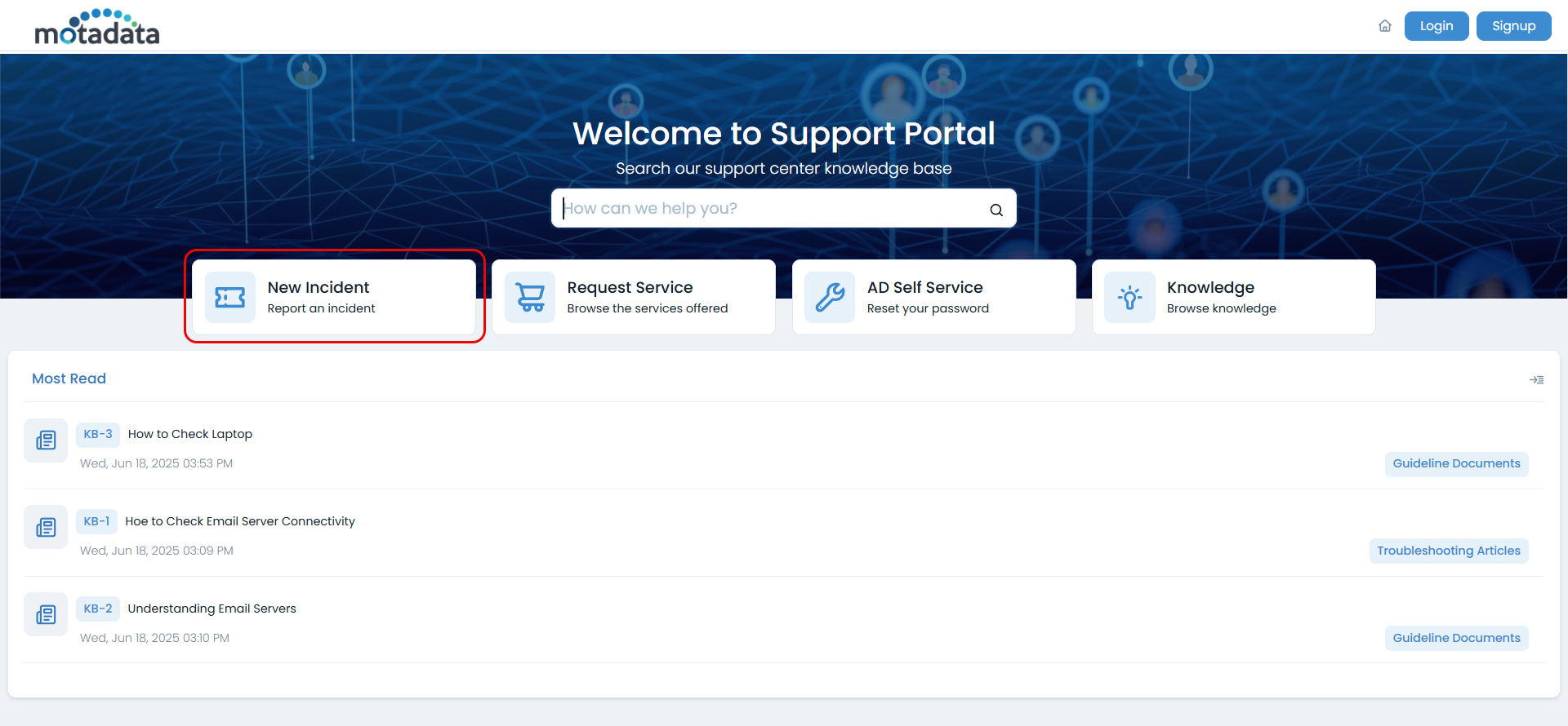 This section outlines the different methods for submitting both incident and service requests within the Support Portal. Follow these steps to ensure your requests are accurately logged and directed to the appropriate teams for resolution.