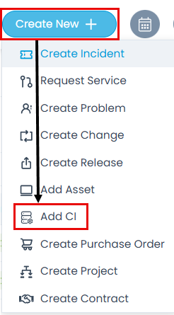 - Click Create New + button and select the Add CI option. The following page appears.