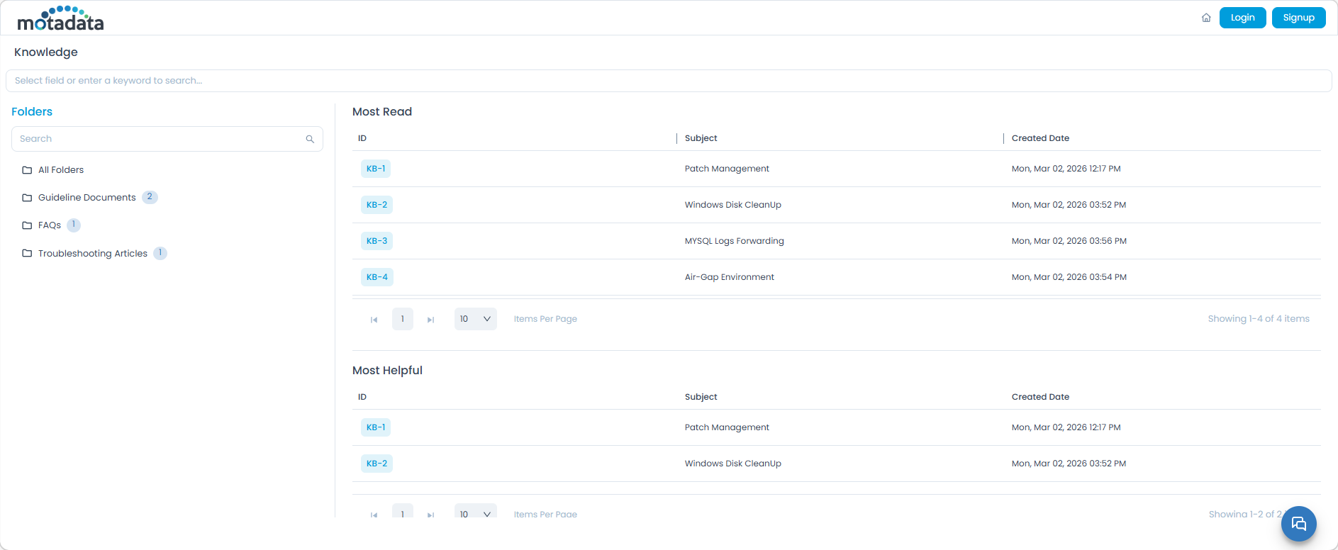 The Knowledge Management section serves as a comprehensive library containing all articles, guides, and FAQs related to the system. This content is readily available to all users who can access the system URL, promoting self-awareness and reducing unnecessary ticket creation. Knowledge articles are typically managed by authenticated Subject Matter Experts (SMEs) who ensure the accuracy and relevance of the information.