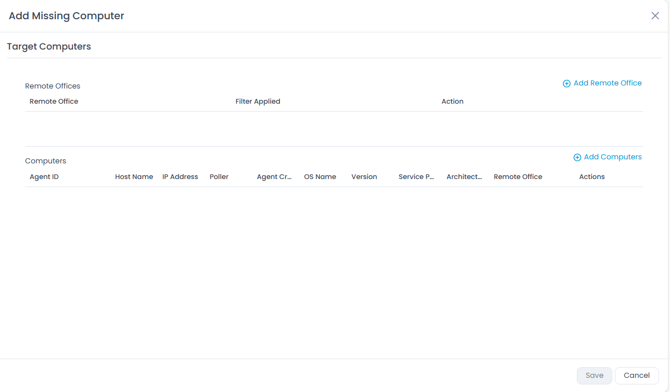 This tab displays a list of computers in which the particular patch is either Missing, Installed, or Ignored. Here, you can add and search a particular computer with the help of the keyword search.