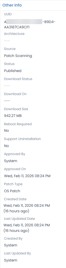 | UUID | Displays the UUID of the patch. |