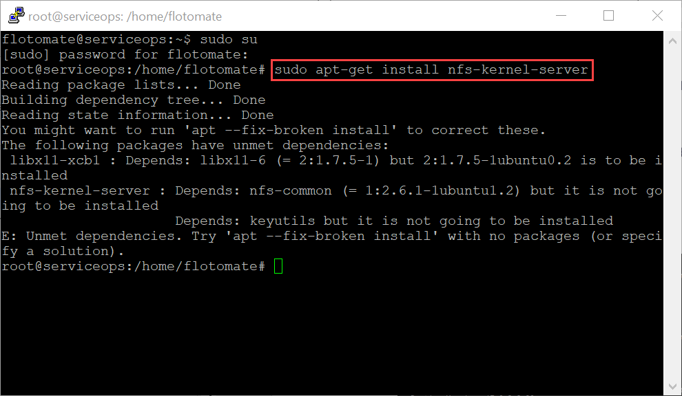 sudo suInstall the NFS Common Server using the below command: