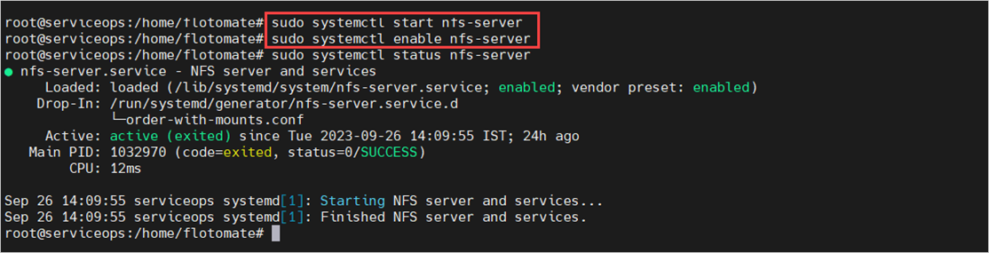 Start and enable the NFS server using the below commands: