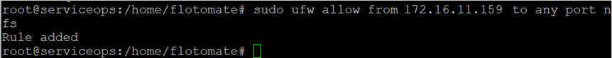 Example: sudo ufw allow from 172.16.11.159 to any port nfs