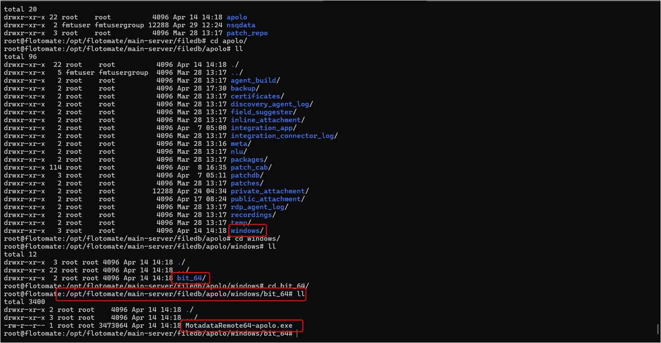 After a successful server download, the MotadataRemote64-apolo.exe file auto-installs on the target machine at the below path:
