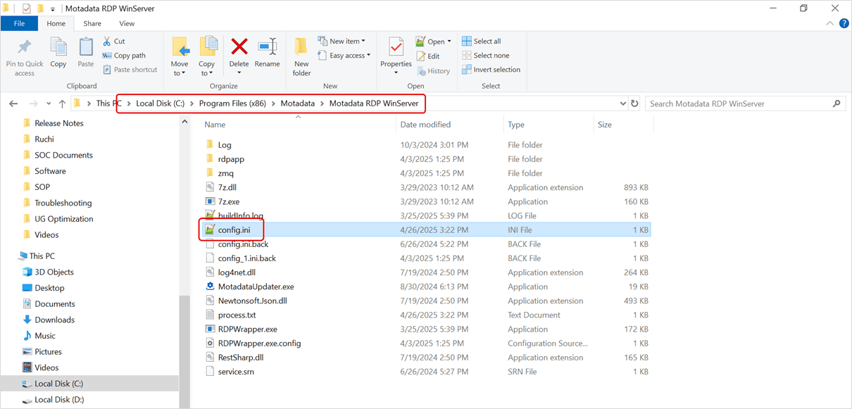 - Check the config.ini file at C:\Program Files (x86)\Motadata\Motadata RDP WinServer.